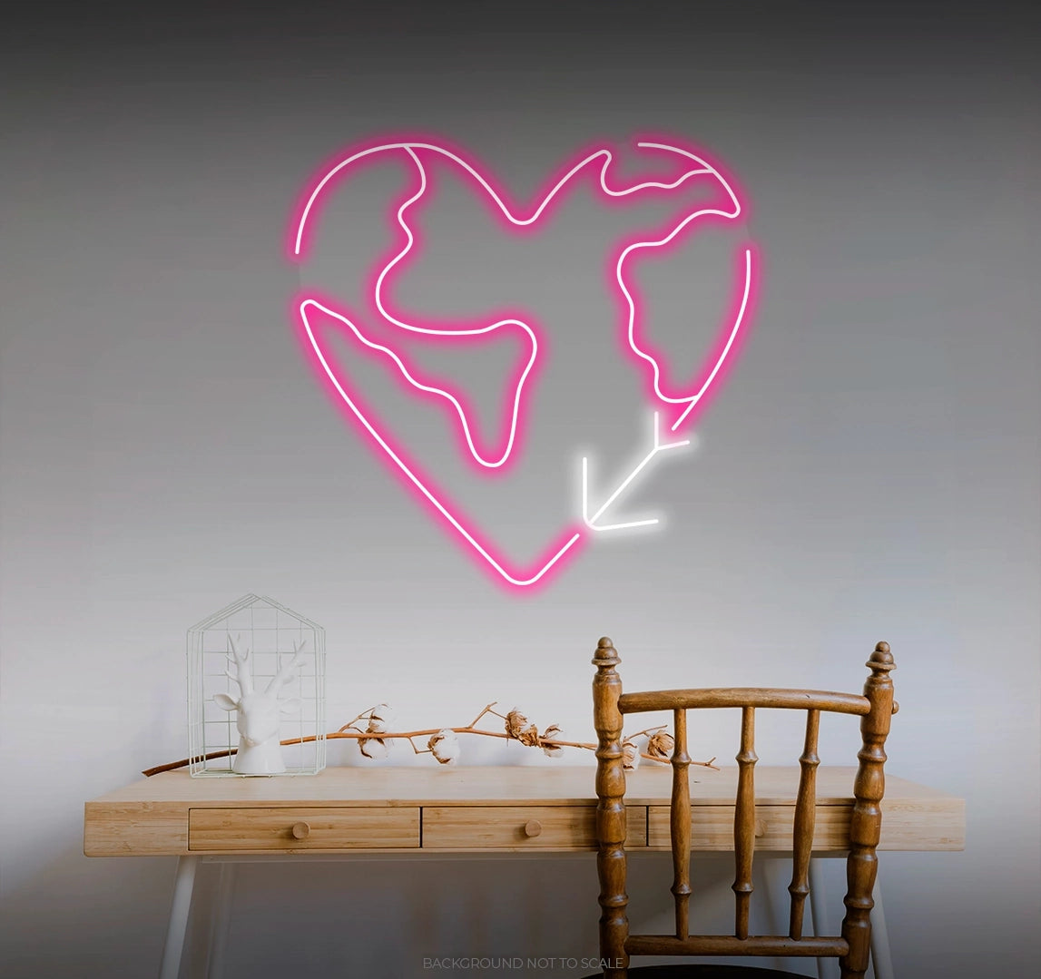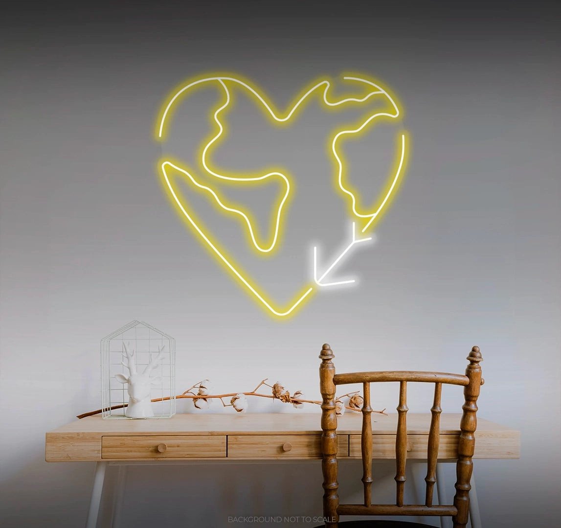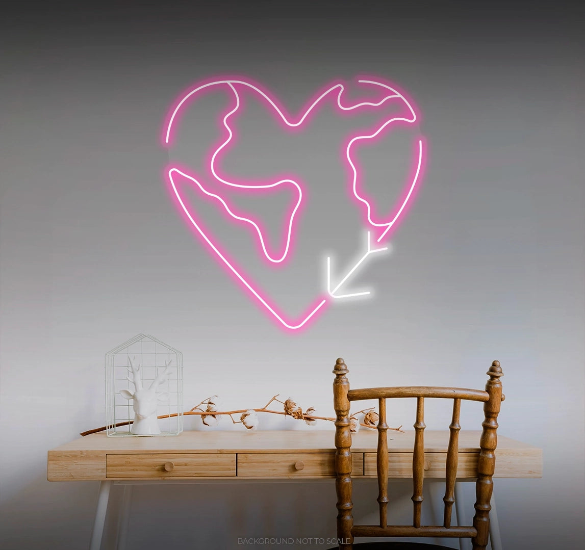 Heart-Shaped World with Plane LED Neon – Wanderlust in a Glow