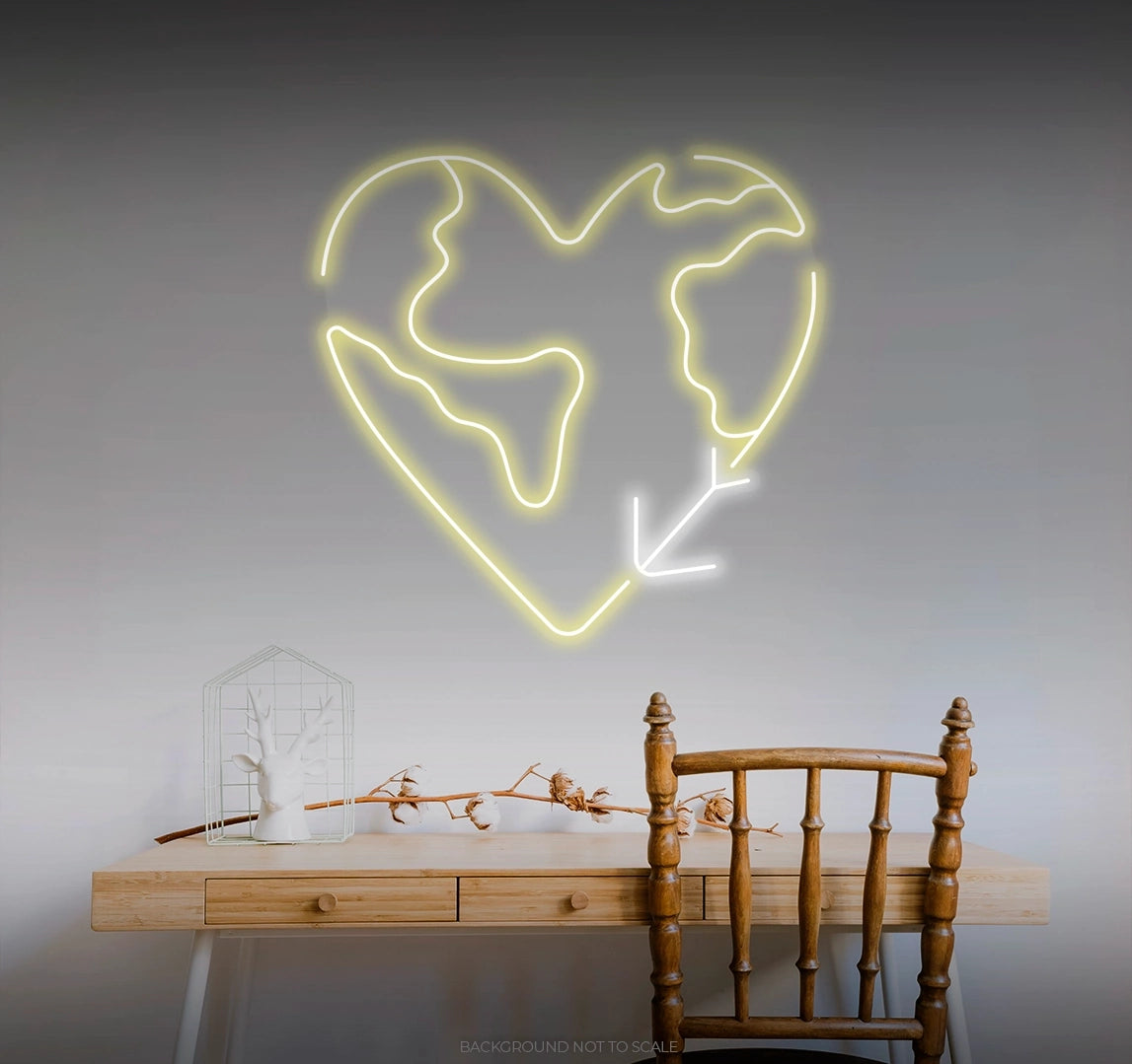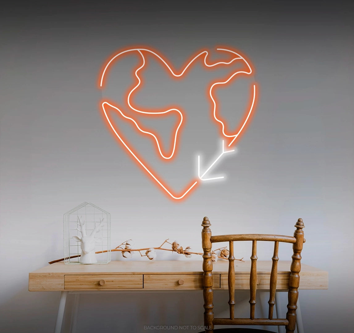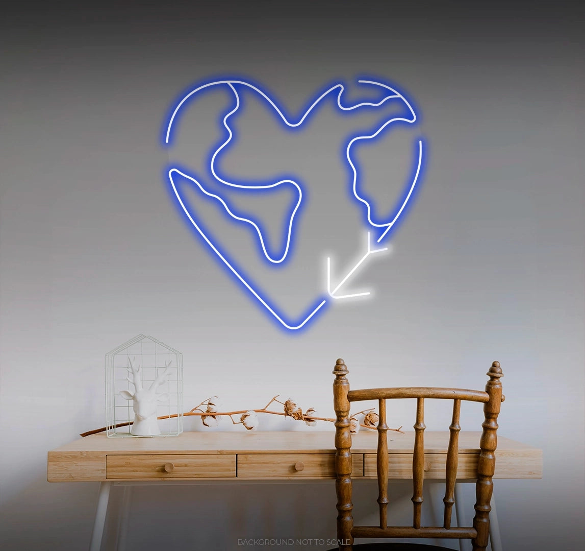 Heart-Shaped World with Plane LED Neon – Wanderlust in a Glow