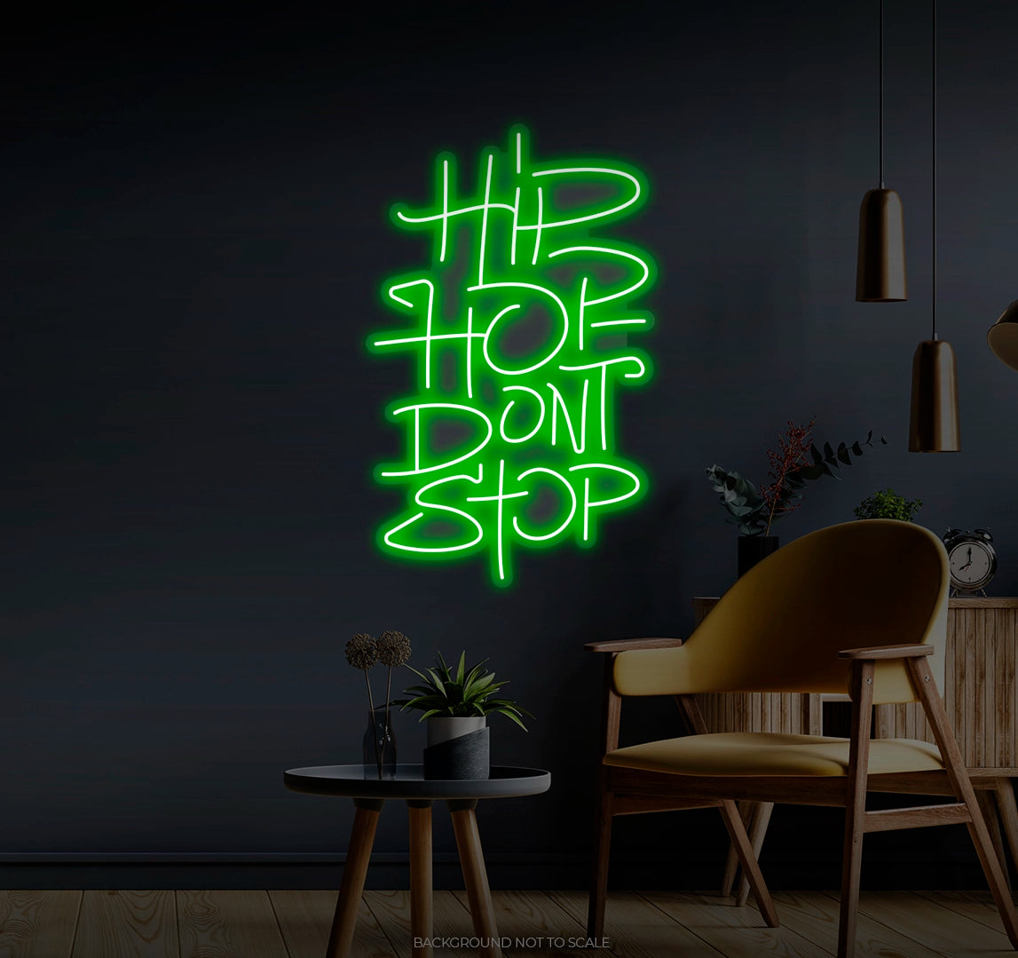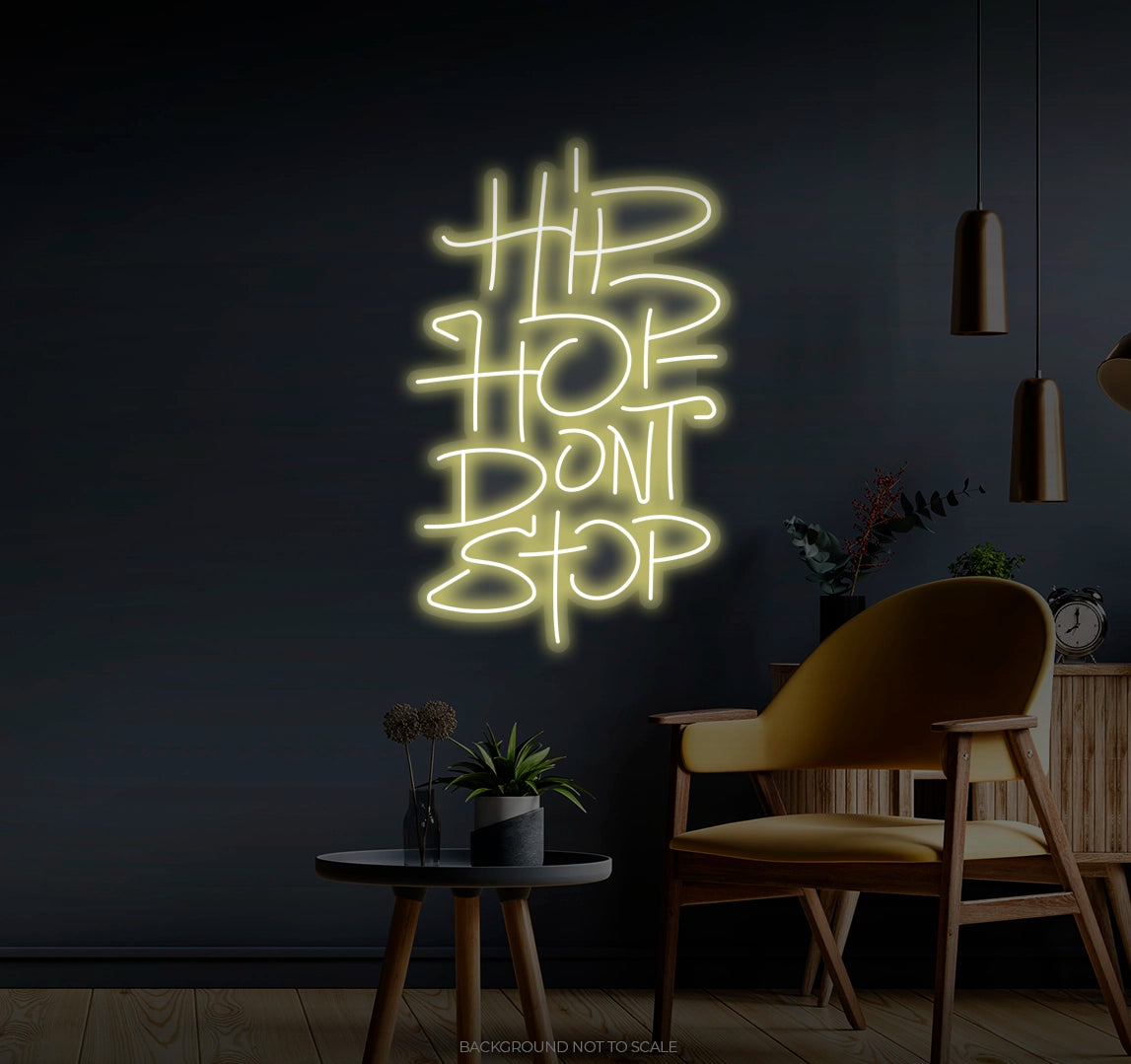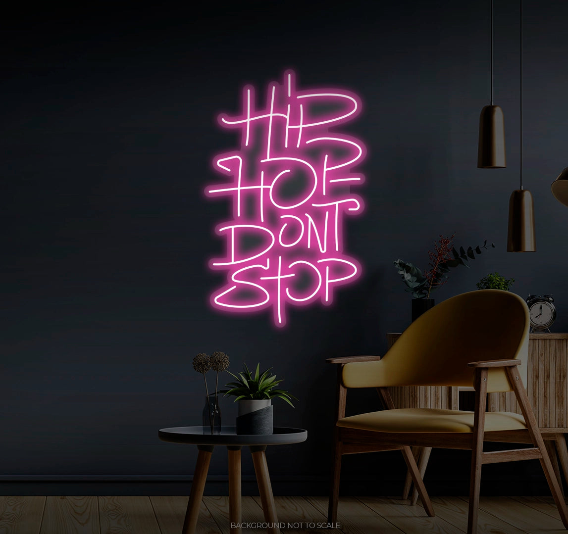 Elevate Your Space with Hip Hop Energy: Embrace the spirit of creativity and expression with our LED neon sign, serving as a glowing reminder to never stop pursuing your dreams. The "Hip Hop Don't Stop" sign is perfect for anyone who loves to surround themselves with inspiration.