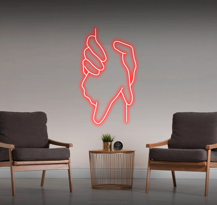 - Illuminate your space with the timeless charm of a neon sign that brings the romantic symbol of holding hands to life.