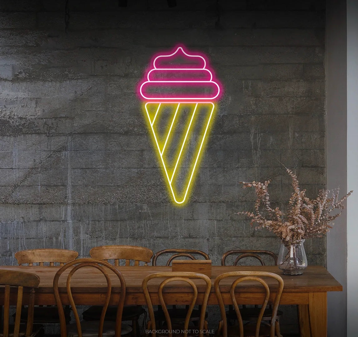 1. Sweet Neon Delight: Our LED neon sign infuses your space with the bright and mouthwatering glow of an ice cream cone, setting the stage for creating an atmosphere of delicious delight and sugary satisfaction.