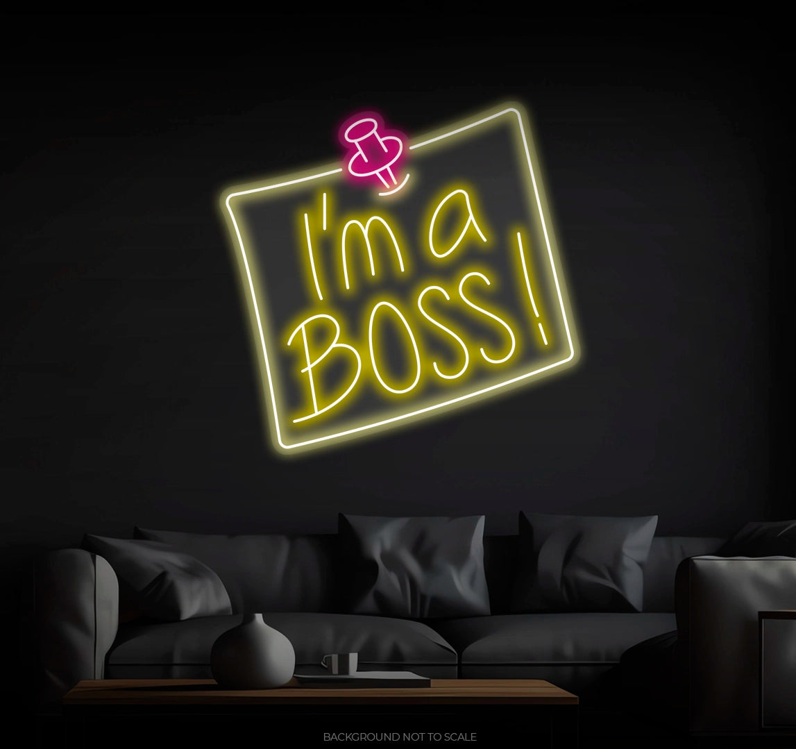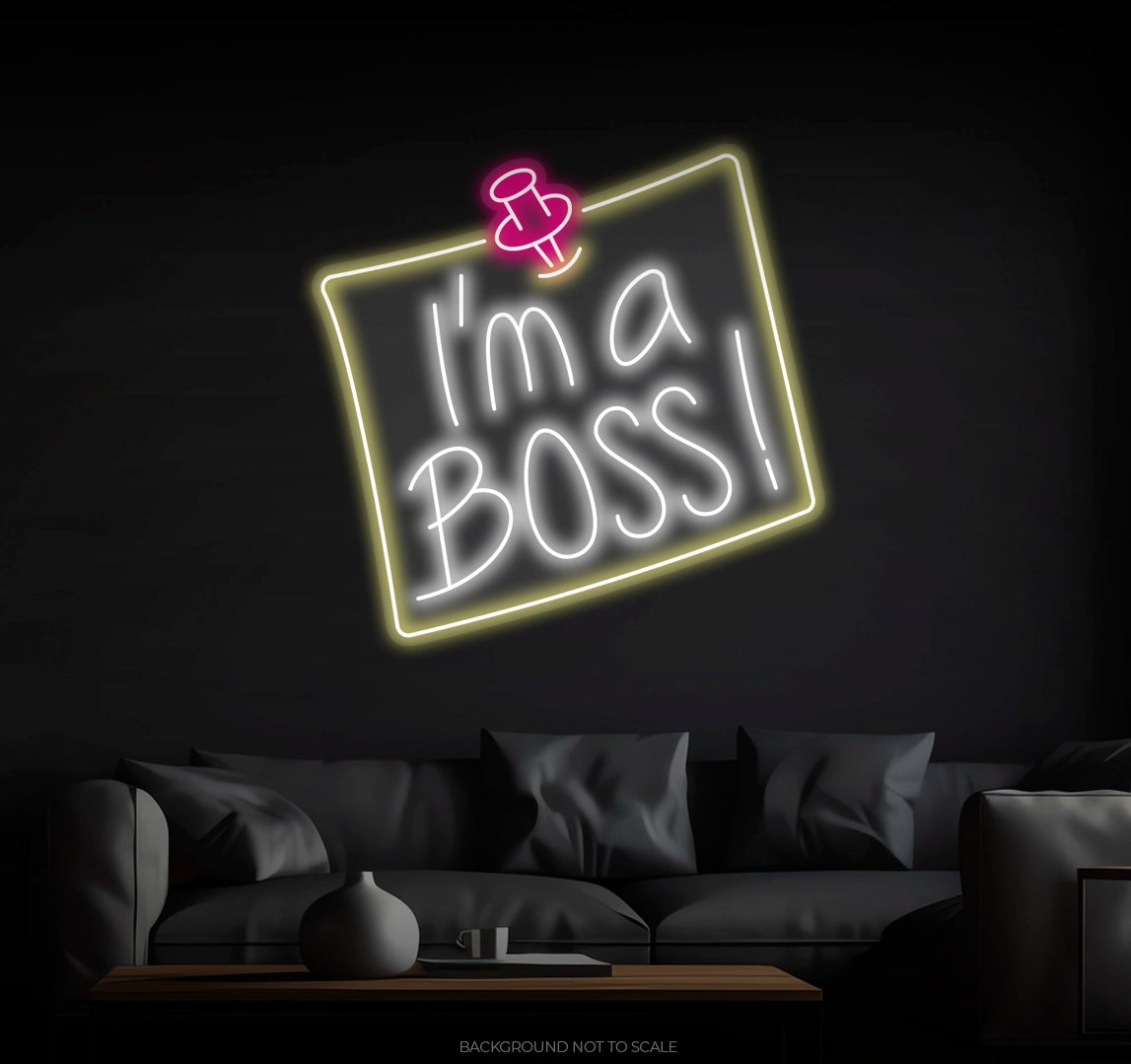 Show off your confidence and leadership with the "I'm a Boss Notepad" LED Neon. Featuring a fun yet powerful design of a notepad with the bold statement, this piece is perfect for those who embrace their inner boss. Add a touch of motivation and modern flair to your office or workspace.