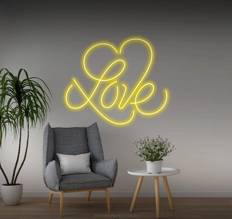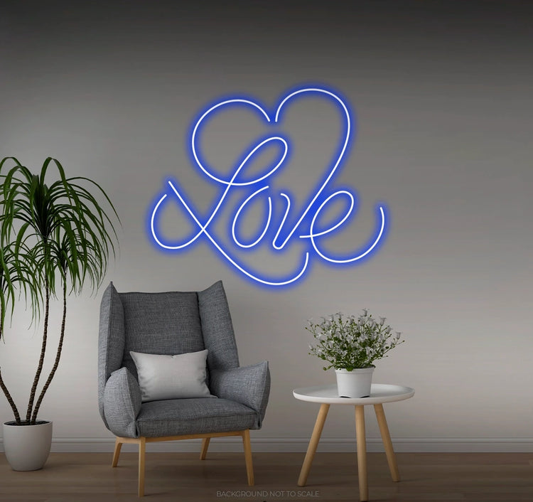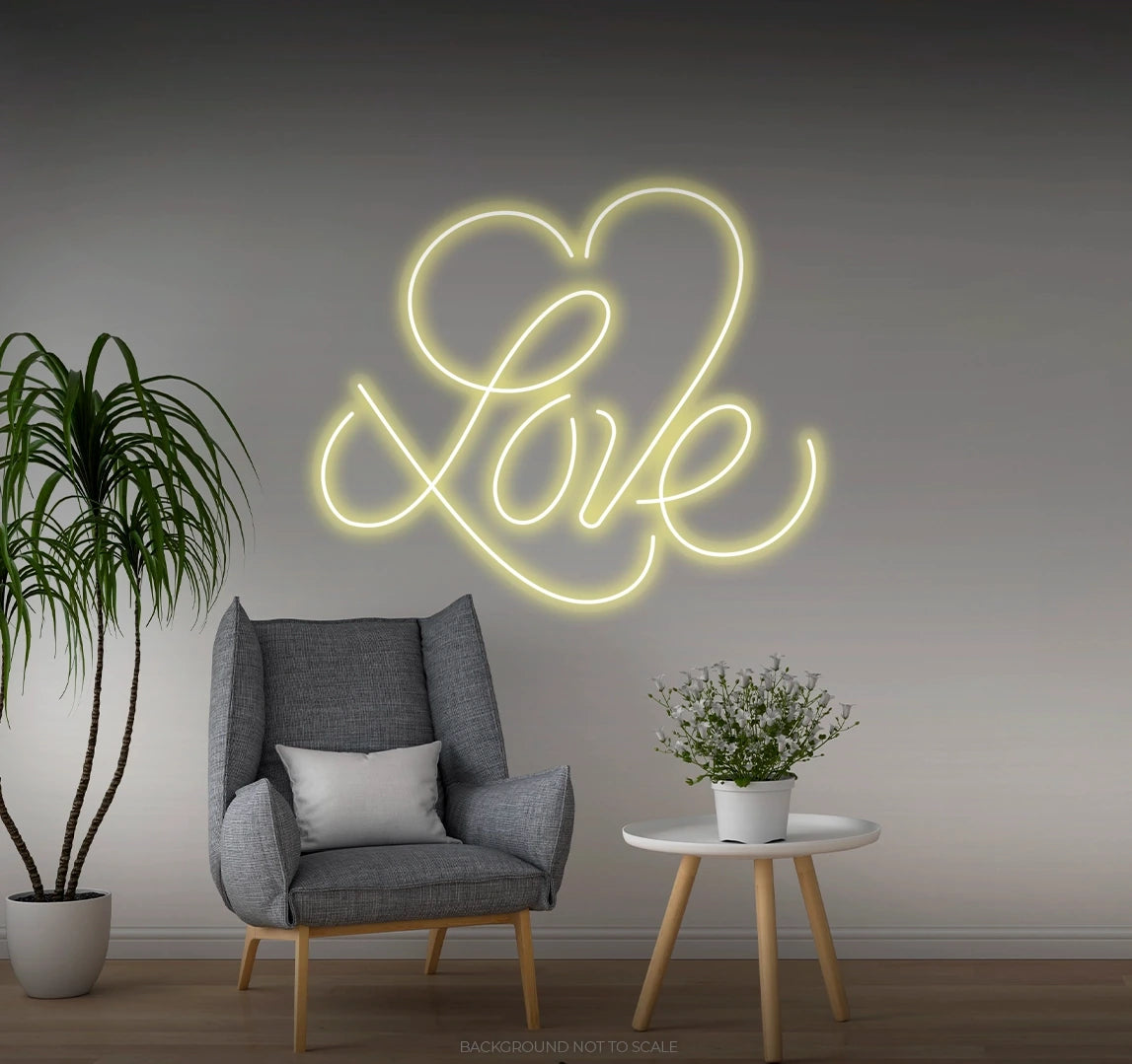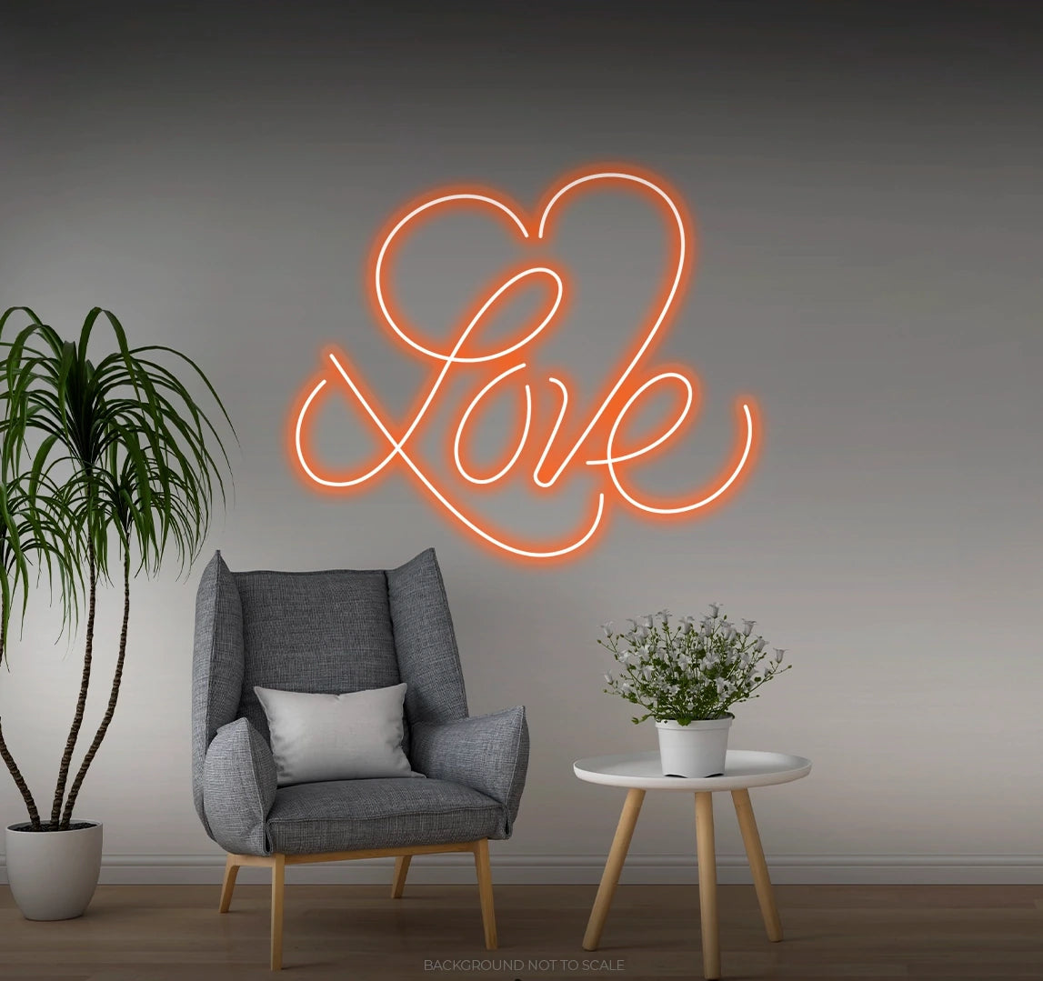 Love calligraphy big heart LED neon