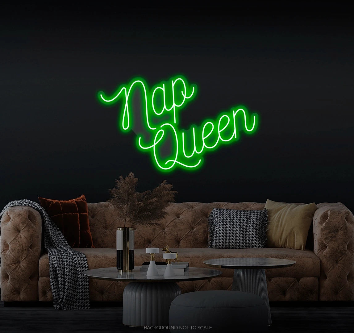 Fit for Royalty: Designed for the ultimate nap enthusiast, this sign proudly displays "Nap Queen" in elegant neon script, making it a fun yet stylish statement piece for your bedroom or personal sanctuary.