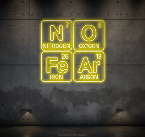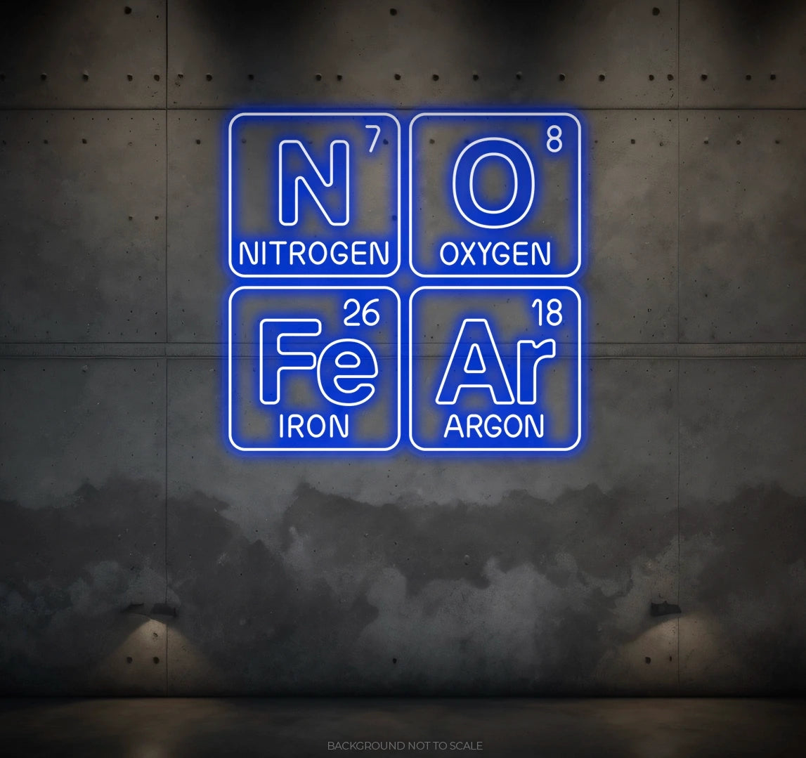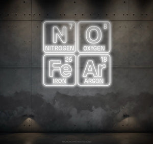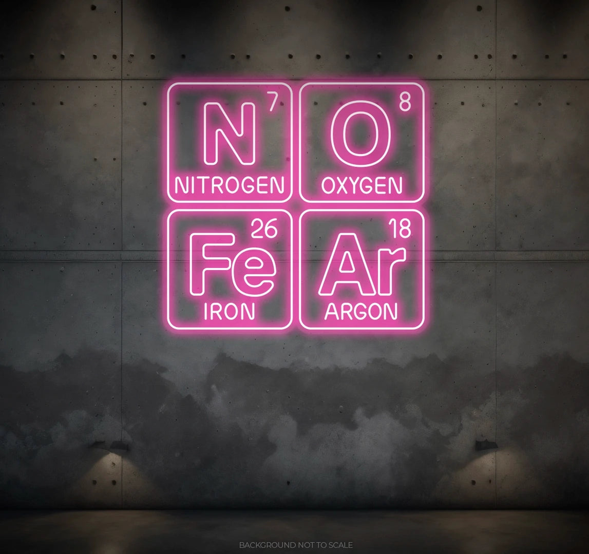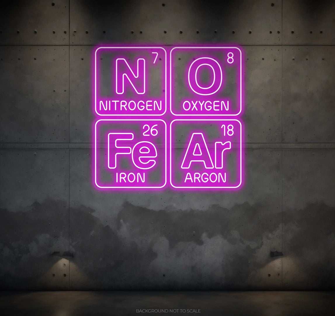 Elevate Your Space with Scientific Vibes: Embrace the bold and scientific ambiance with our LED neon sign, casting a radiant glow that symbolizes the spirit of fearlessness within the phrase "No Fear Periodic Table."