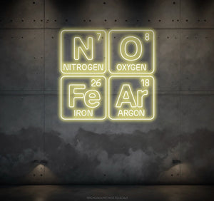 Fearless Glow: Immerse your space in a fearless and bold glow as our LED neon sign creatively fuses the "No Fear" expression with the Periodic Table. This high-energy expression transforms your surroundings into a haven of courage, creating an atmosphere that resonates with the fearlessness of scientific exploration.