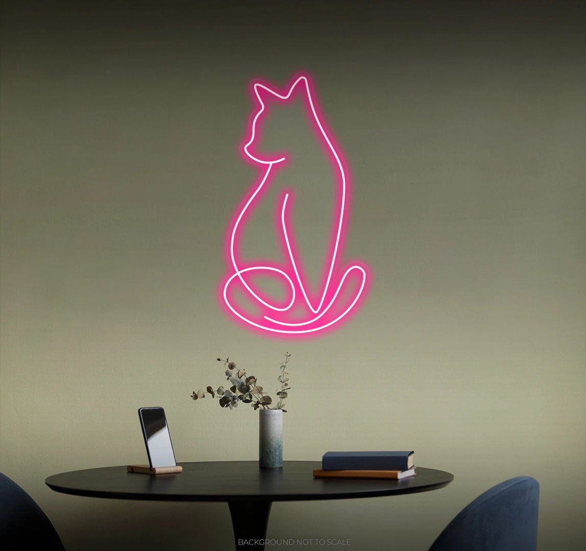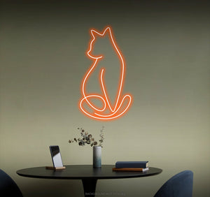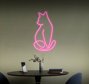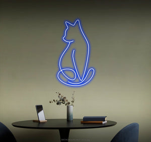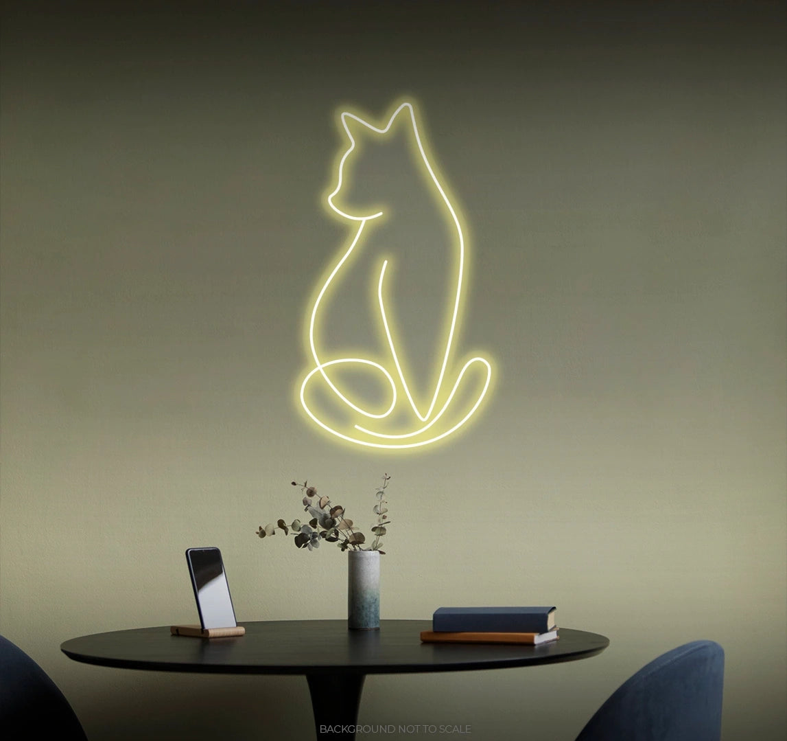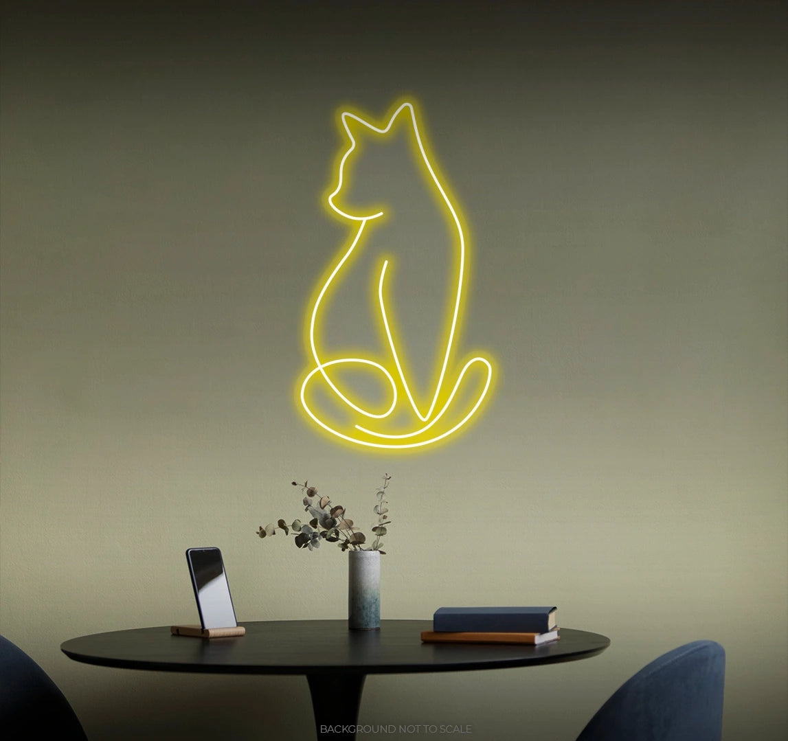 - Watch as our LED neon sign gently lights up your space with a subtle and warm glow, capturing the essence of the elegant line art of a sitting cat.