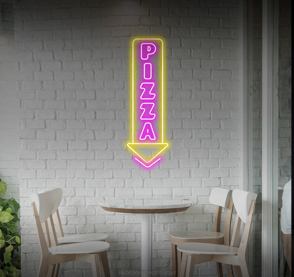 - Illuminate your kitchen, dining area, or any space with the timeless charm of a pizza arrow in neon.