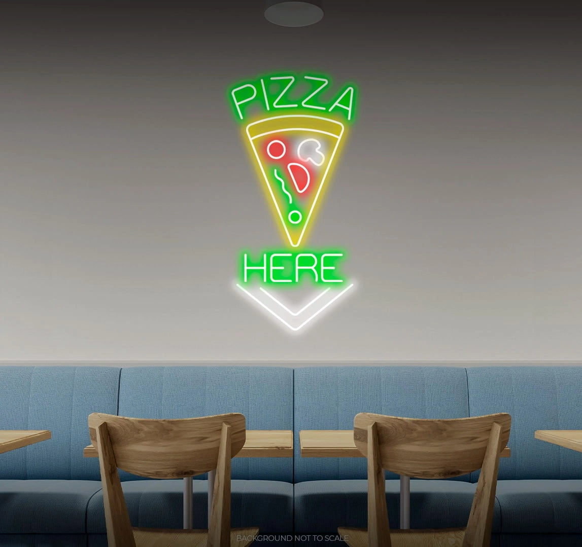 Order Your "Pizza Here" LED Neon Today! Don't miss this opportunity to bring a touch of culinary delight and anticipation into your space. Order your "Pizza Here" LED Neon today and let the delicious allure of pizza delivery guide you through a world of savory moments! Illuminate your space with the delectable radiance of our "Pizza Here" LED Neon – an essential addition for pizza enthusiasts and those who appreciate the delightful anticipation of a freshly delivered pie. Bon appétit!