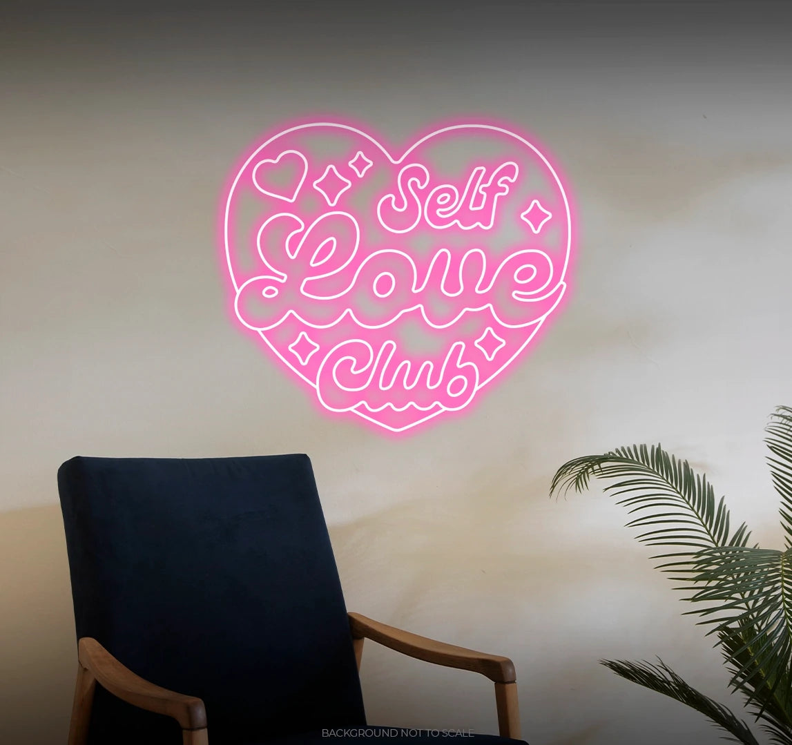 Elevate Your Space with Self-Love Vibes: Embrace the empowering and positive ambiance with our LED neon sign, casting a radiant glow that symbolizes the self-love spirit of the phrase "Self Love Club."