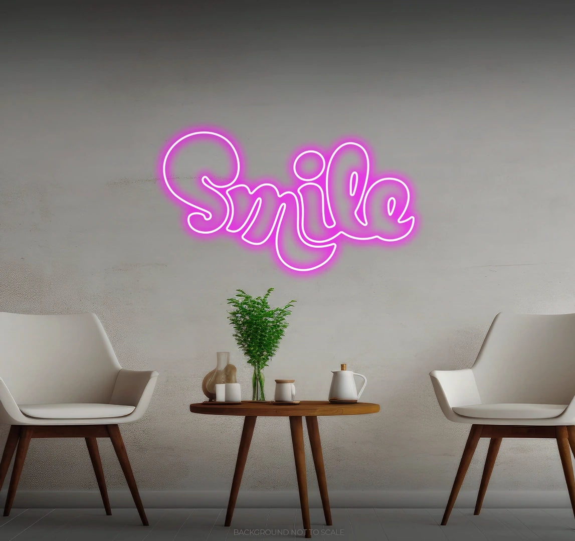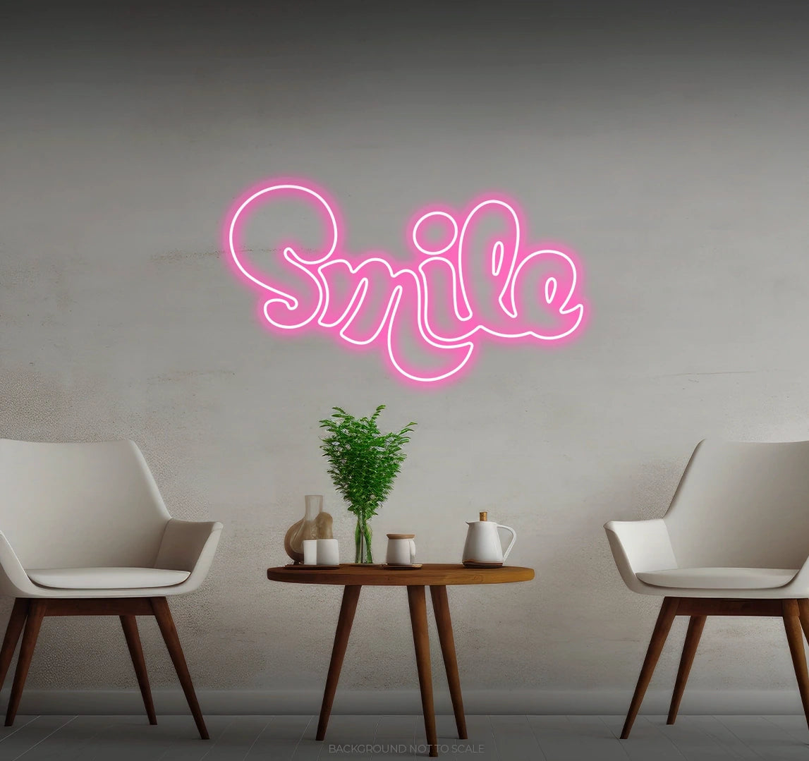 Joyful Glow: Immerse your space in a colorful and uplifting glow as our LED neon sign spells out "Smile" in playful balloon letters. This high-energy expression captures the whimsical allure, transforming your surroundings into a haven of positive and joyful vibes.