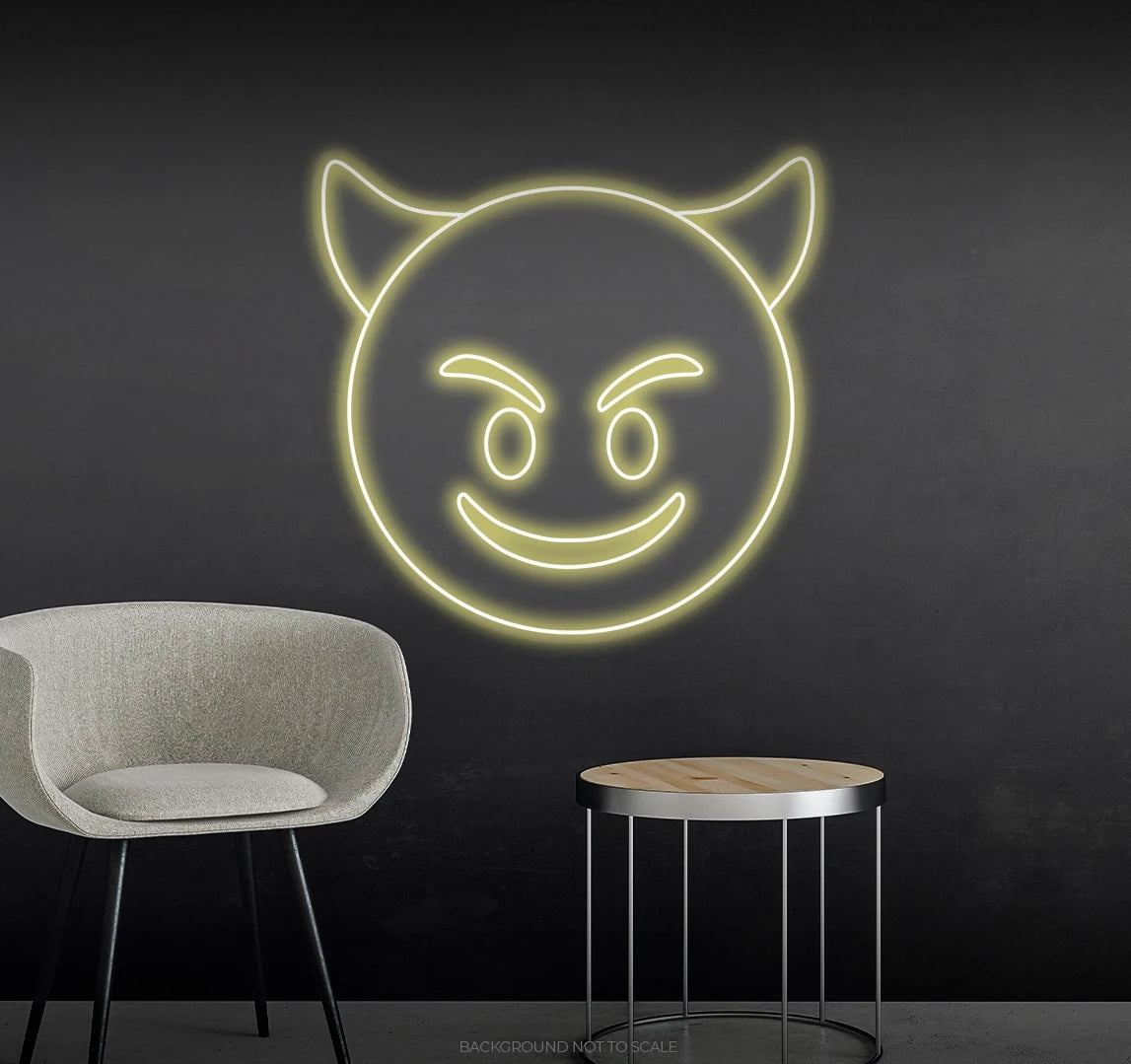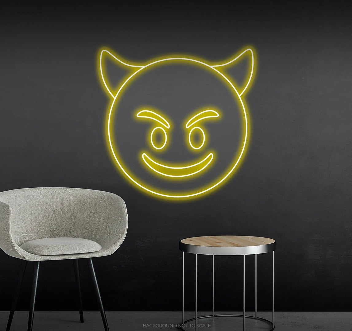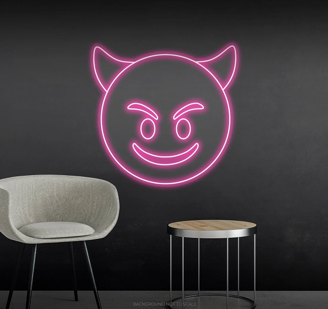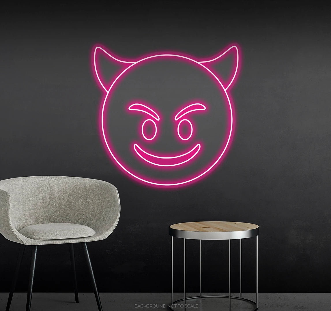 Elevate Your Space with a Devilishly Good Vibe: Embrace the rebellious ambiance with our LED neon sign, casting a radiant glow that symbolizes the playful and edgy spirit of an evil grin.