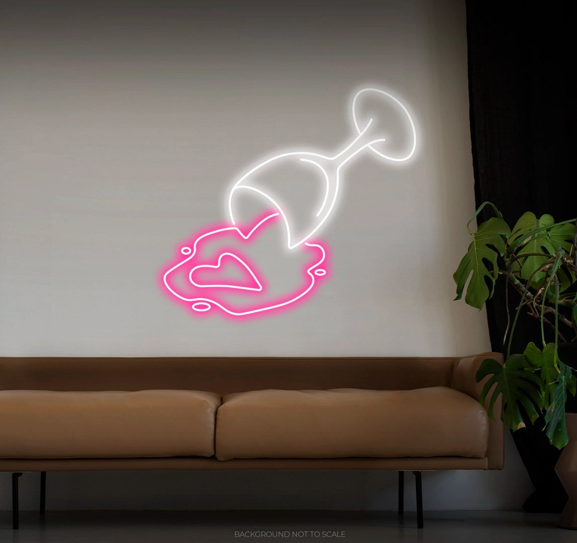 Chic Signage Splendor: Illuminate your space with the captivating glow of our LED neon sign. It doesn't just light up; it radiates with the timeless charm of a "Spilled Wine Glass," capturing the essence of elevated living and the sophisticated allure of a spilled wine moment.