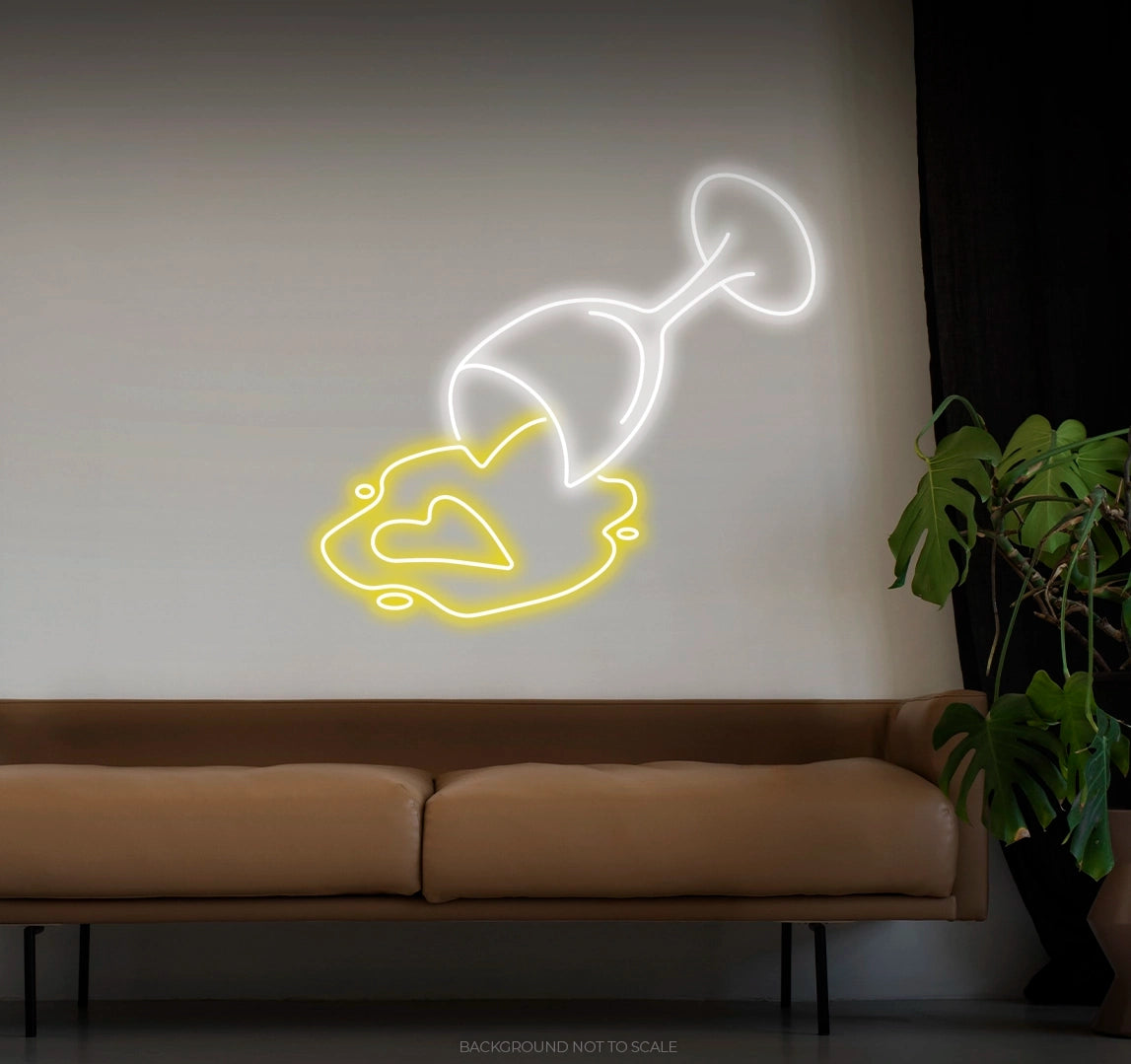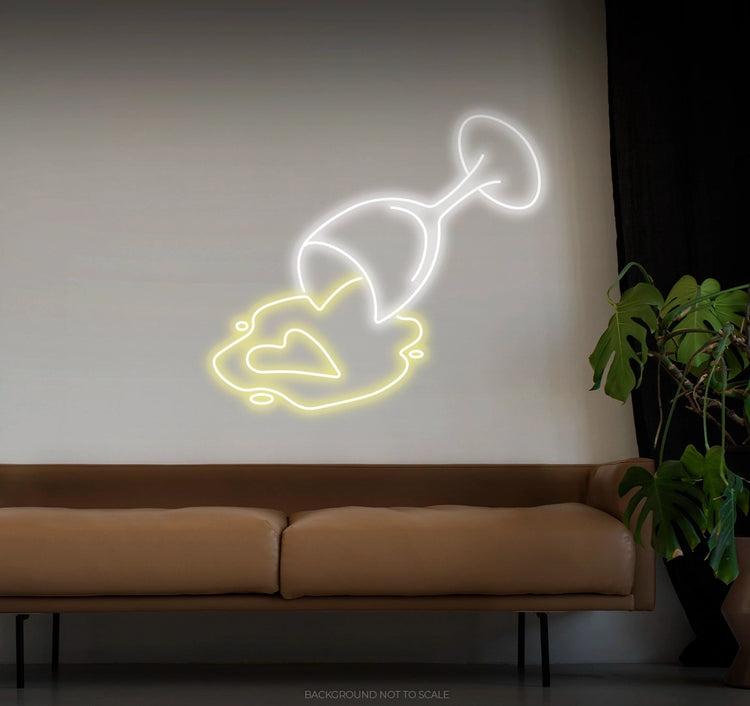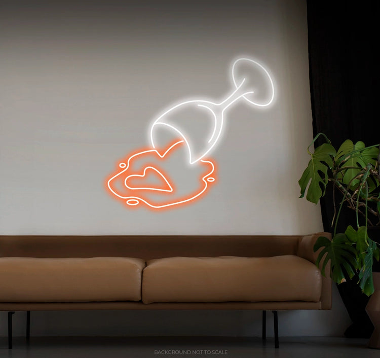Timeless Elegance: Immerse your space in the warm glow as our LED neon sign delicately portrays the captivating silhouette of a spilled wine glass. This refined expression captures the timeless sophistication of fine living, transforming your surroundings into a haven of exquisite allure.