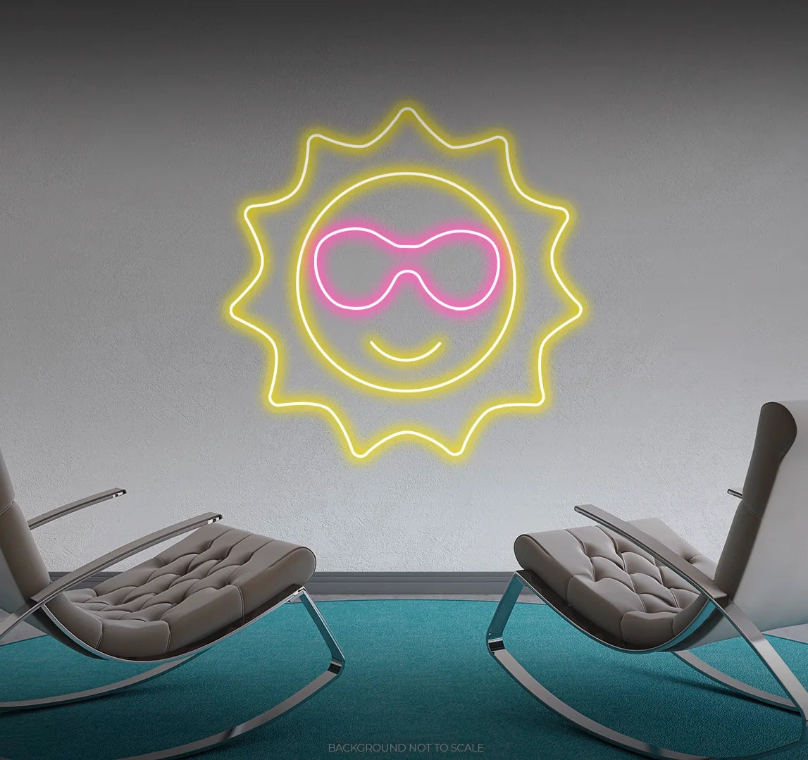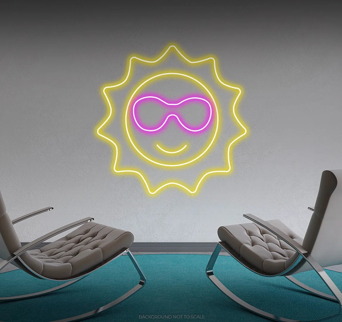 Energize Your Space with Sun-Kissed Style: Embrace the playful ambiance with our LED neon sign, casting a radiant glow that symbolizes the stylish and carefree nature of the sun wearing sunglasses. Let this visual representation of sunny style fill your space with a sense of joyful allure.