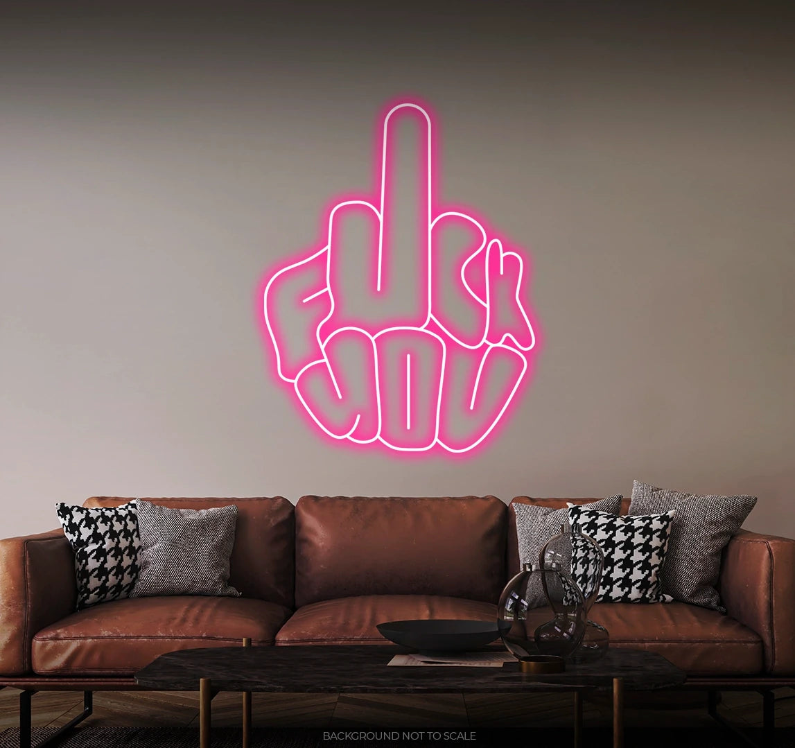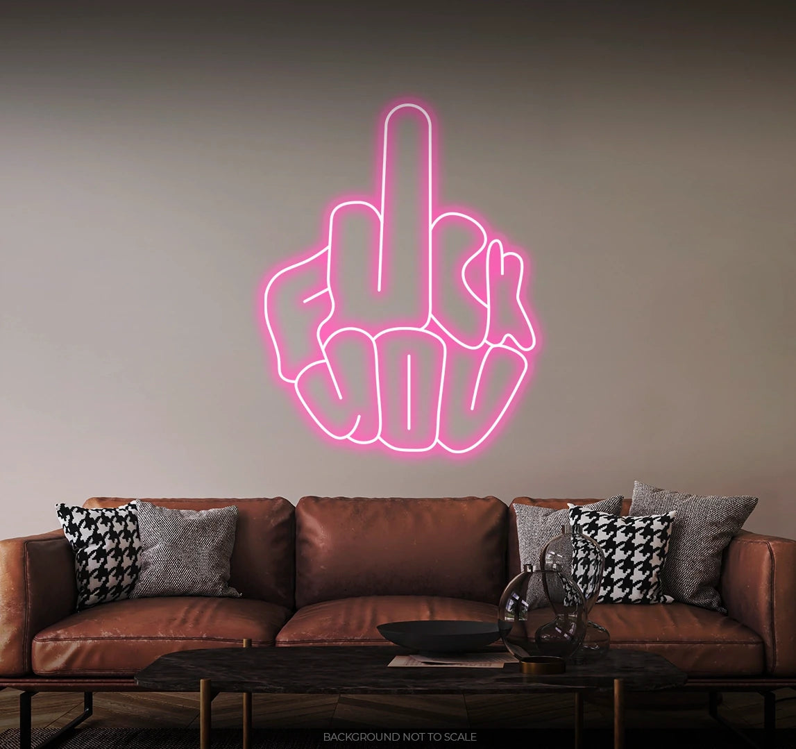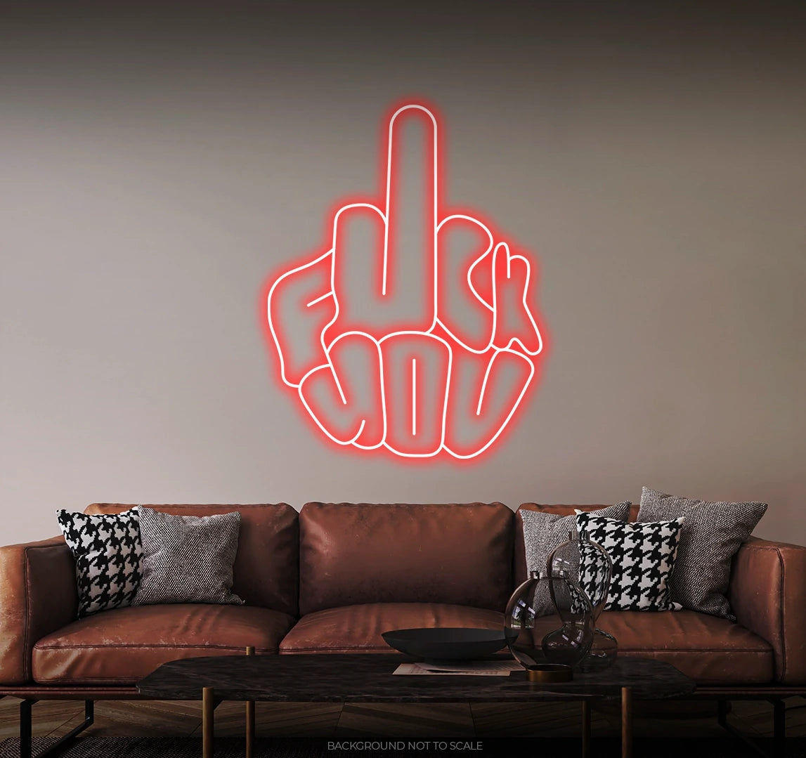 - Watch as our LED neon sign lights up your space with a bold and expressive glow, featuring a hand gesture that communicates strength and impact.