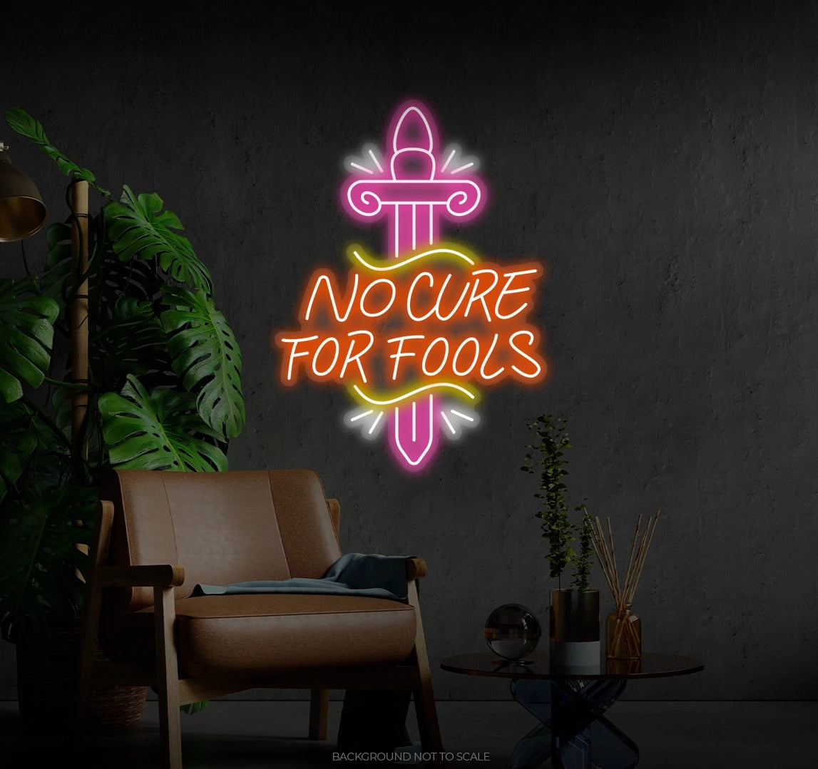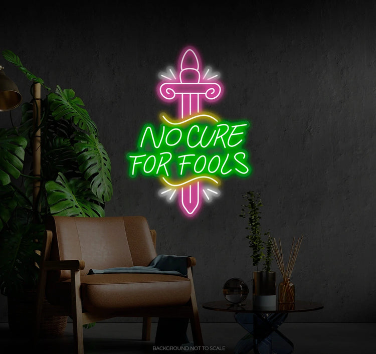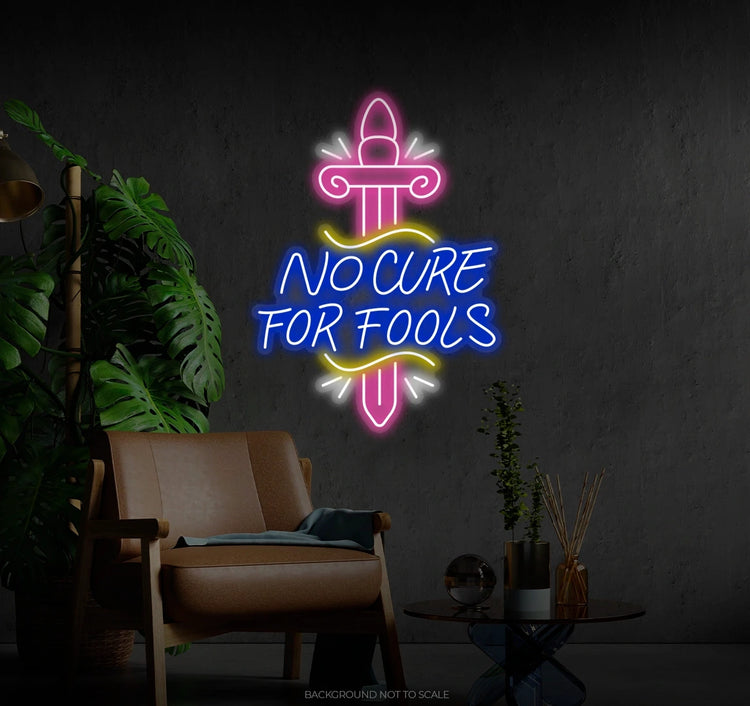 Durable, Energy-Efficient, and Safe: This neon sign is crafted with LED technology for long-lasting durability and safety. Enjoy the sharp, impactful glow of the "Sword No Cure For Fools" LED Neon without worrying about energy consumption or heat, making it a safe and stunning addition to your space.