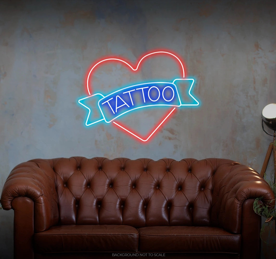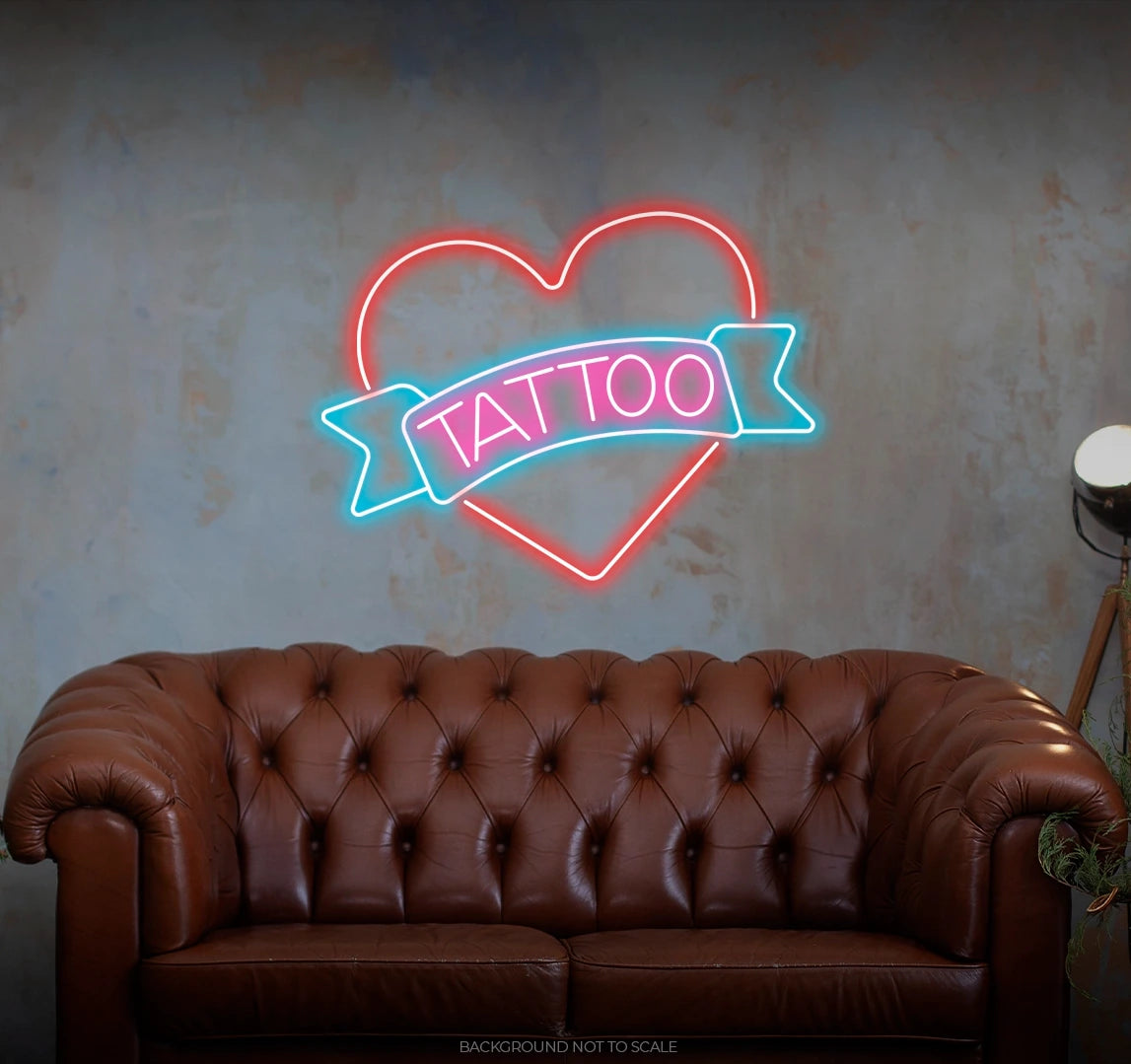 Ink-Infused Signage Splendor: Illuminate your space with the vibrant glow of our LED neon sign. It doesn't just light up; it radiates with the timeless charm of a "Tattoo Ribbon in Heart," capturing the essence of self-expression and the allure of ink-inspired aesthetics.