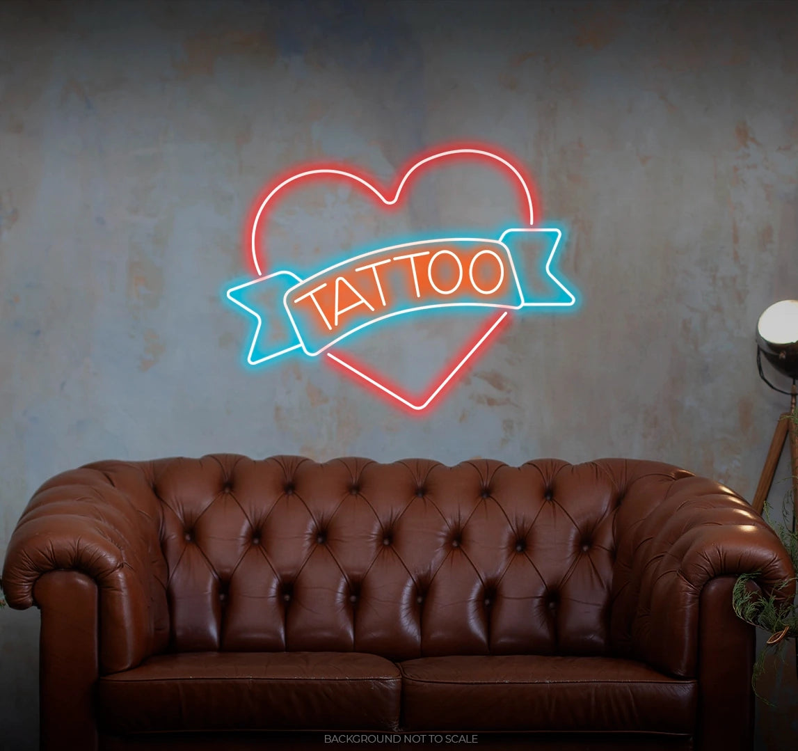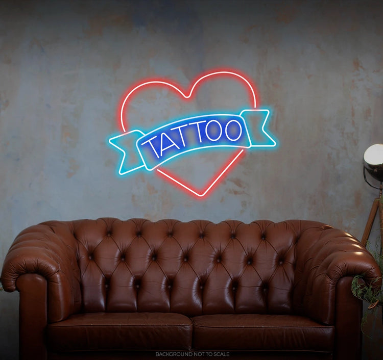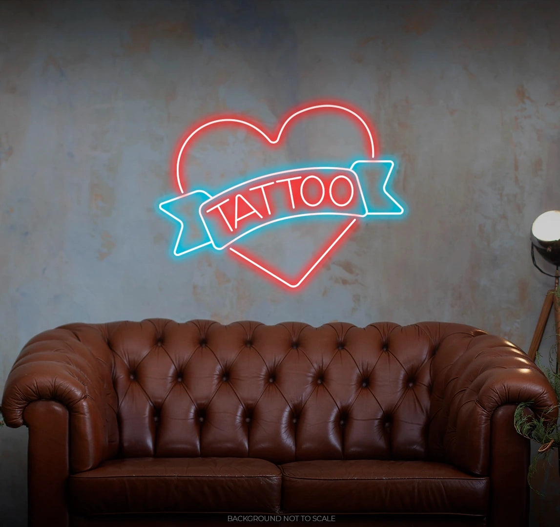 Artistic Radiance: Immerse your space in the vibrant glow as our LED neon sign showcases a "Tattoo Ribbon in Heart." This radiant expression encapsulates the artistic and passionate ambiance that comes with tattoo-inspired design.