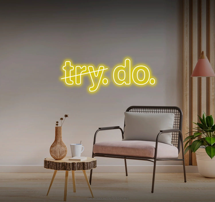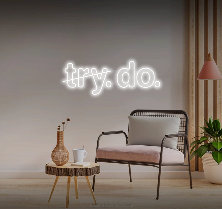 Order Your "Try. Do." LED Neon Today! Don't miss this opportunity to add a touch of motivational energy to your space. Order your "Try. Do." LED Neon today and let the radiant charm of resilience guide you through a world of inspiring moments! Illuminate your space with the empowering radiance of our "Try. Do." LED Neon – an essential addition for those who believe in the transformative power of determination and action. Try. Do. Succeed!
