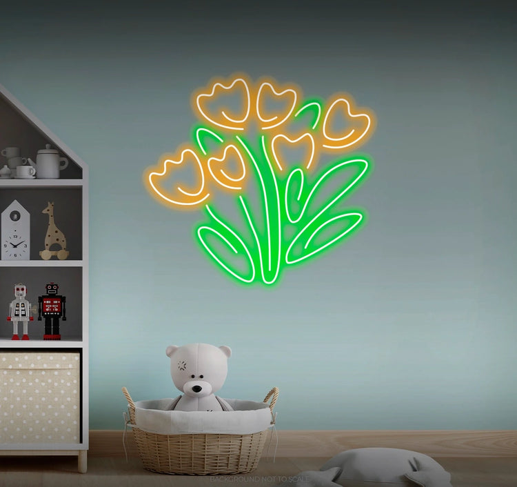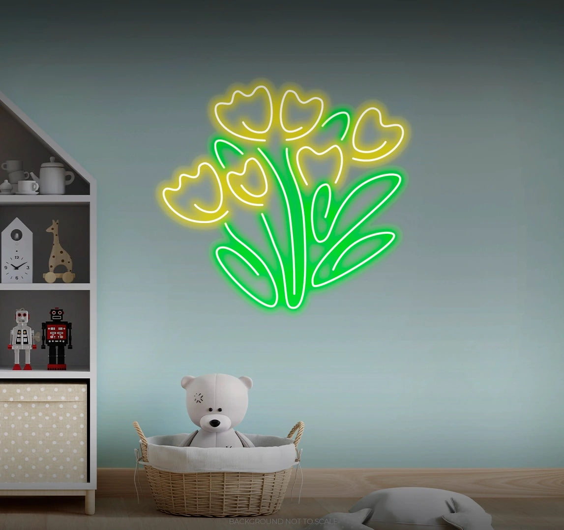 Energize Your Space with Blossoming Grace: Embrace the lively ambiance with our LED neon sign, casting a radiant glow that symbolizes the joy and vitality of a tulip bouquet. Let this visual representation of floral brilliance fill your space with a sense of natural allure.