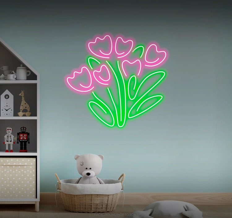 Floral Signage Splendor: Illuminate your space with the vibrant glow of our LED neon sign. It doesn't just light up; it radiates with the timeless charm of the "Tulip Bouquet," capturing the essence of nature's artistry and the delightful presence of a blooming arrangement.