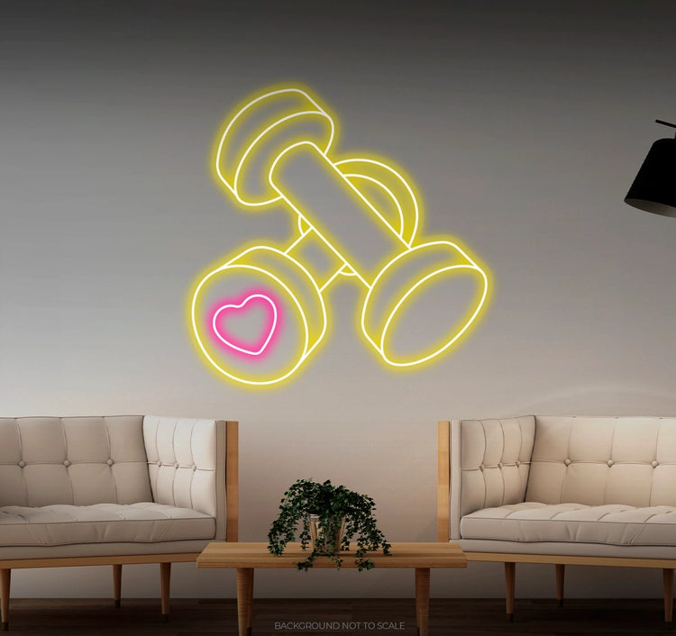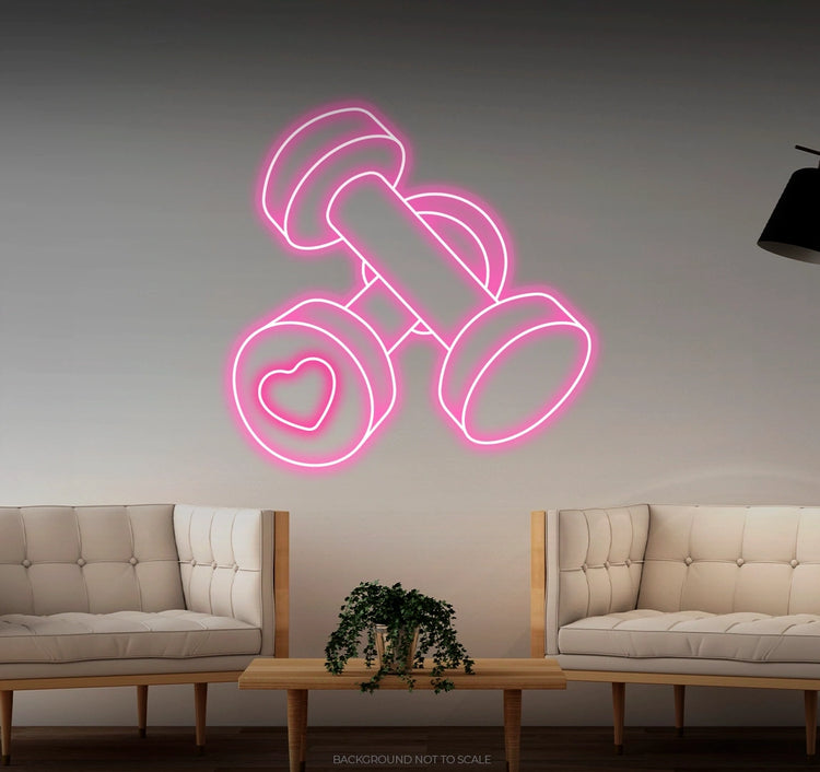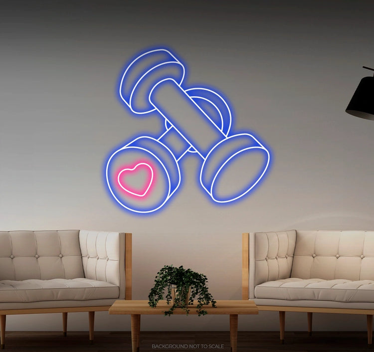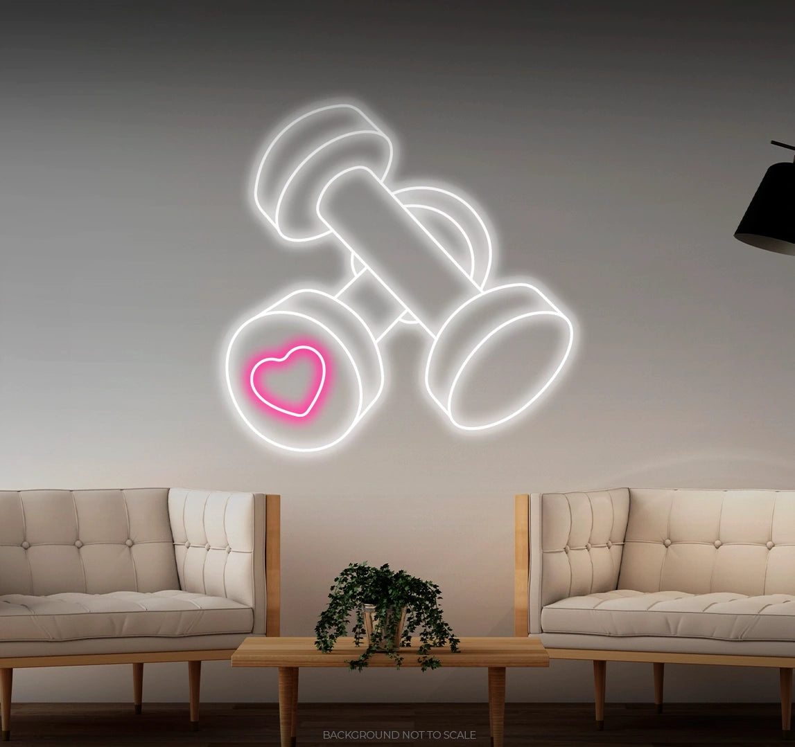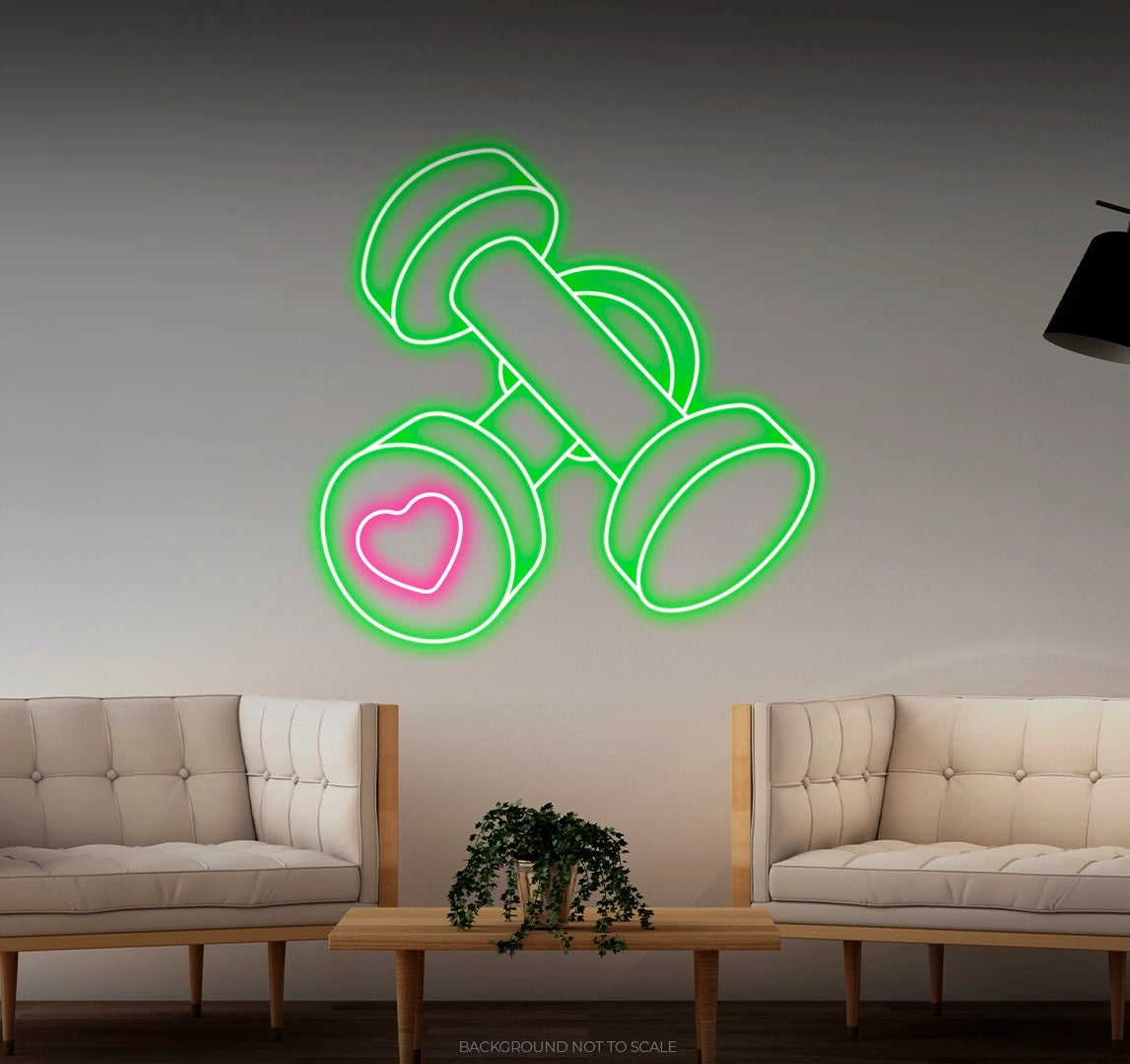 Two Dumbbells Heart Details LED Neon – Strength Meets Love, Glow with Power