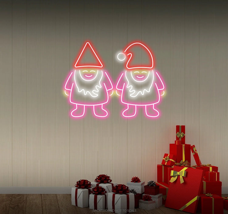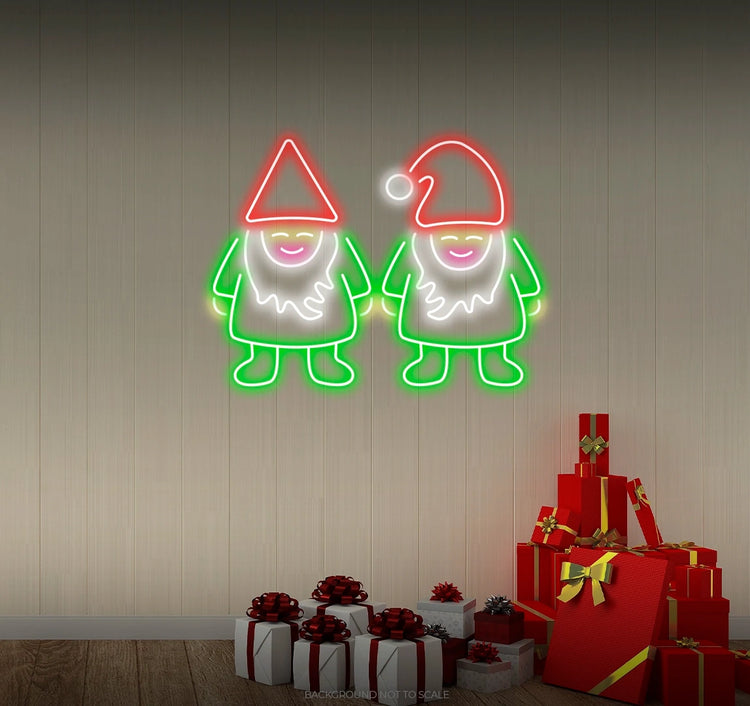 Two happy Christmas dwarfs LED neon