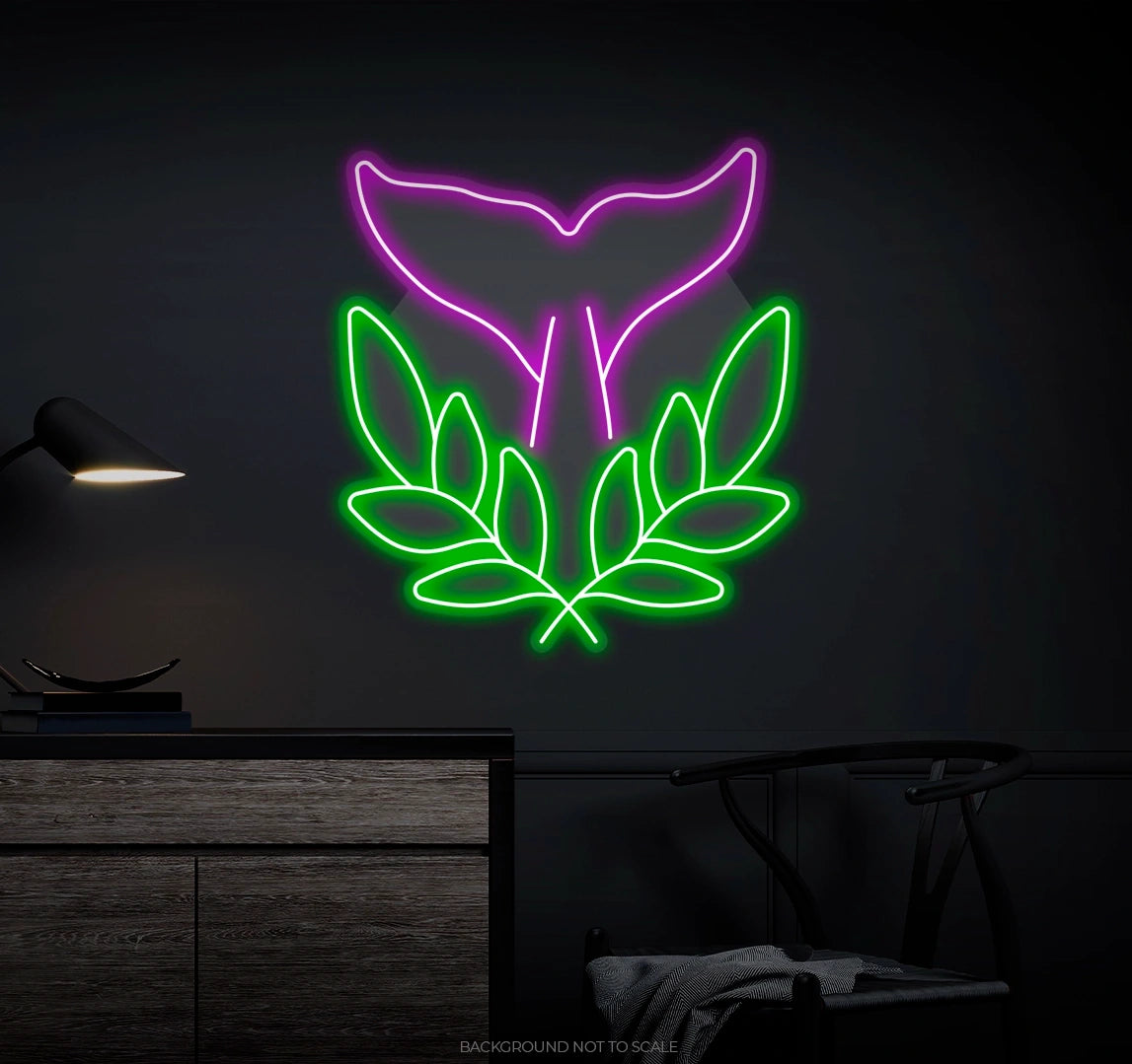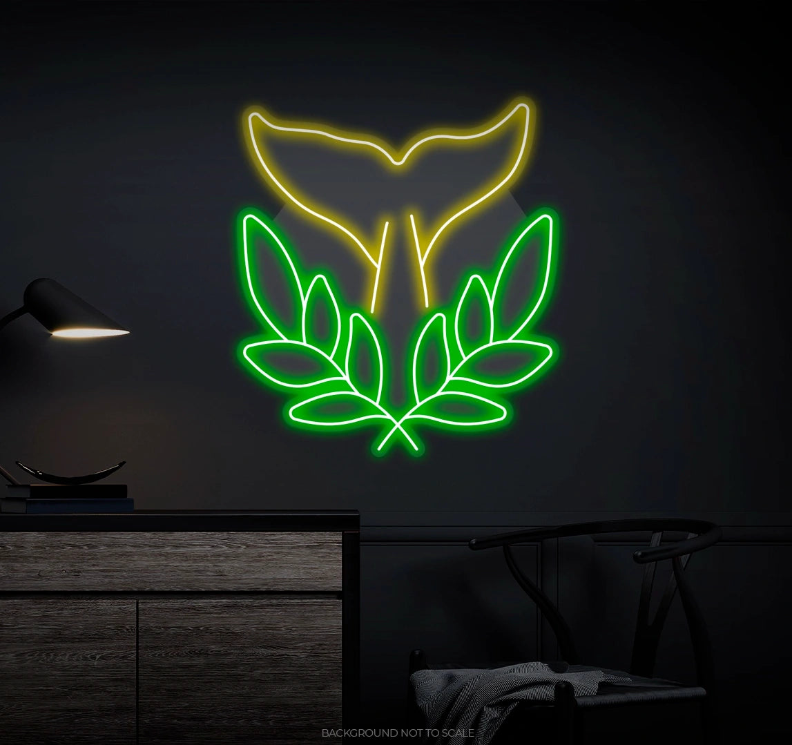 "Whale Tail with Leaves" LED Neon – Nature-Inspired and Serene