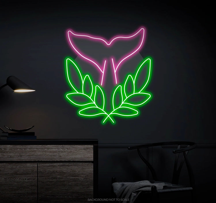 Bring the serene beauty of the ocean and nature to your space with the "Whale Tail with Leaves" LED Neon. Order now to create a calming and inspired atmosphere!