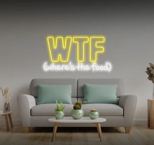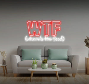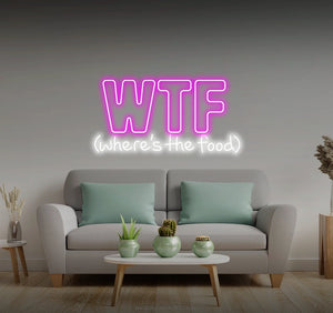 4. "WTF Where Is the Food" Signage Wit: Illuminate your space with the playful glow of our food-themed LED Neon. It doesn't just light up; it radiates with the timeless charm of a hungry soul's cry, capturing the essence of humor and the anticipation of a good meal.